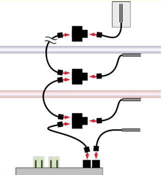 - Stecken Sie mit einem schwarzen Bus-Kabel und einer Y-Buchse einen Temperaturfühler an den Bus-1